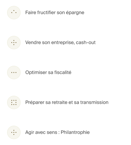 Un conseiller qui vous accompagne dans la durée, entouré d'une équipe d'experts (avocats fiscalistes, ingénieurs patrimoniaux, experts sectoriels).